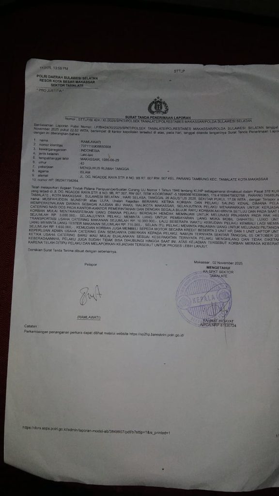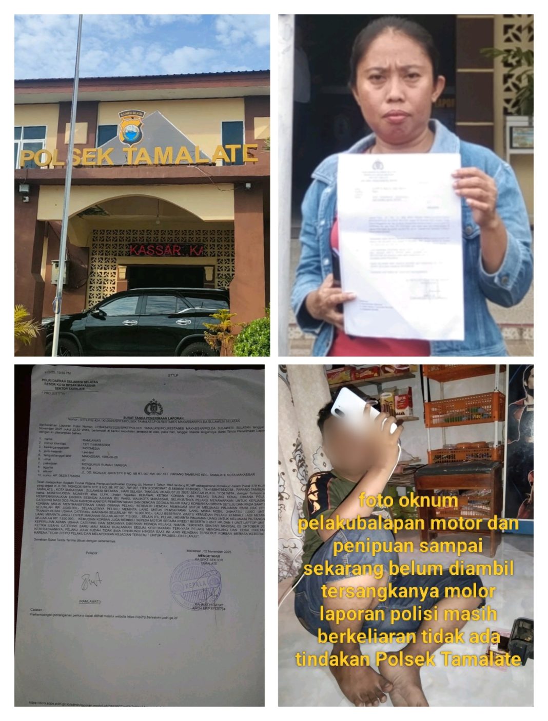 Lamban Gerak, Kapolsek Tamalate Didesak Tangkap Terlapor Musfahuddin Munsyir Alias Ulfa Penipuan Kredit Motor FIF Cenderawasih